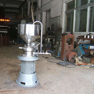 (五)打漿、細磨切下的玉米籽及刮取的漿液經(jīng)加入5倍重的水用打漿機打漿,篩孔直徑為0.5毫米,除去玉米軸碎片及其他雜物。然后再用膠體磨進行細磨轉(zhuǎn)入攪拌缸中待用。