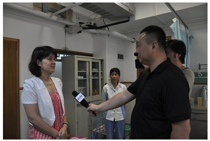 正在醫(yī)院進(jìn)行采訪的中央電視臺(tái)記者獲知完達(dá)山為五胞胎家庭解決寶寶們?nèi)甑目诩Z,現(xiàn)場采訪了王榮霞。