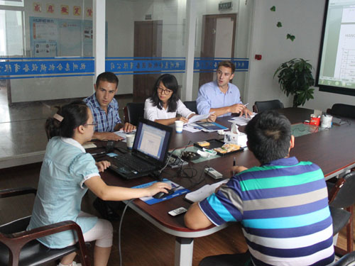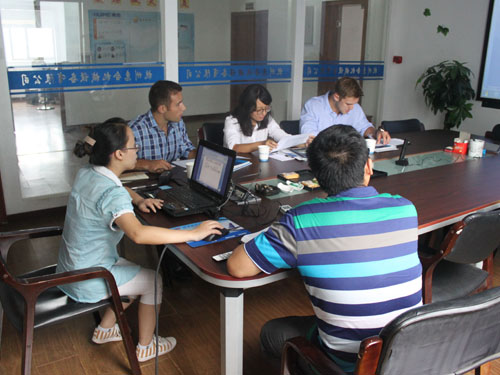 2014年9月11日,美國(guó)客戶因業(yè)務(wù)擴(kuò)展需要訂制全套爆爆蛋生產(chǎn)線設(shè)備,來我公司與銷售人員和工程師進(jìn)行具體細(xì)節(jié)的洽談。
