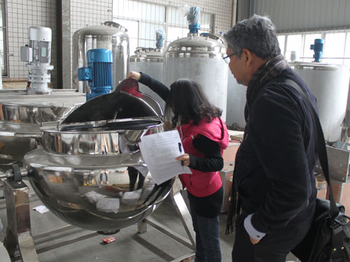 經(jīng)過與業(yè)務(wù)員的多次溝通與確認(rèn),新加坡客戶于2015年3月12日在我公司下單一臺600L高壓蒸煮鍋。目前設(shè)備已接近收尾工作,客戶來我公司驗(yàn)貨,業(yè)務(wù)員熱情接待并為其講解了我公司的其它機(jī)械設(shè)備。