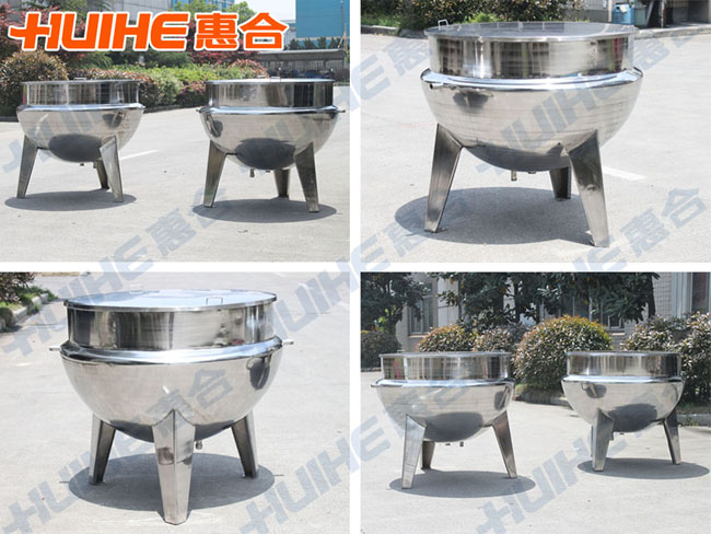 夾層蒸汽鍋由鍋體和可傾架組成;鍋體是由內(nèi)外球形鍋體組成的雙層結(jié)構(gòu)形式,中間夾層通入蒸汽加熱。