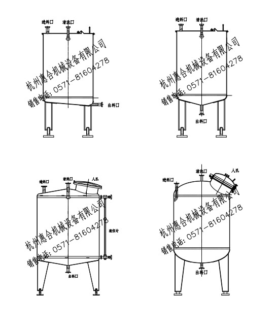 該系列儲罐由圓柱形不銹鋼內(nèi)筒組成筒體,并配有衛(wèi)生人孔、清洗球、液位計(jì)。