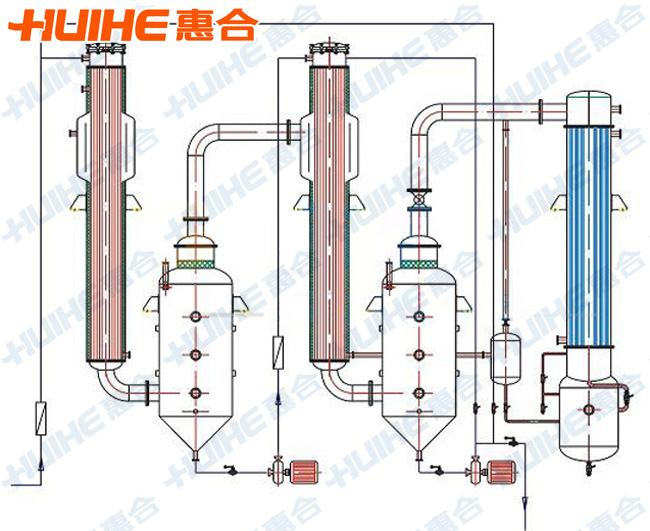 1、物料由列管上部進(jìn)入,經(jīng)物料分布器均勻進(jìn)入每一根管中并沿管內(nèi)表面形成薄膜。通過(guò)間壁傳熱,物料得以沸騰,沸騰的氣體帶動(dòng)液體高速向下流動(dòng),進(jìn)入汽液分離器,產(chǎn)品得以濃縮。